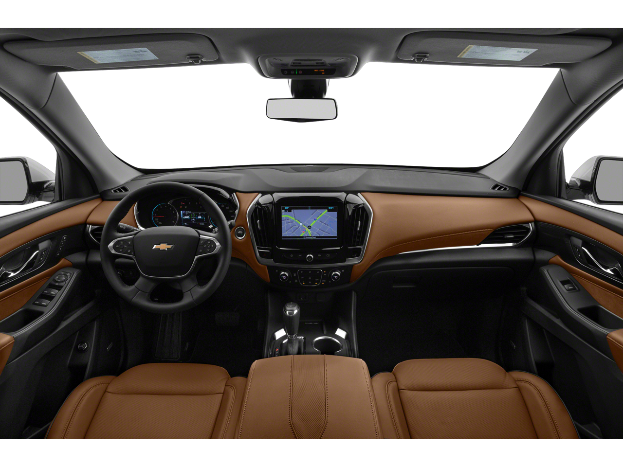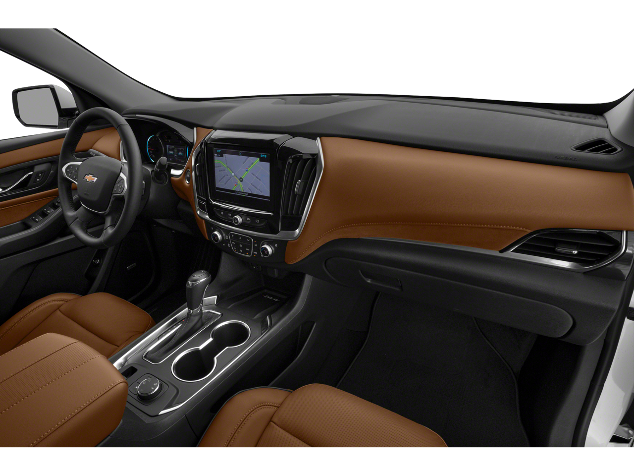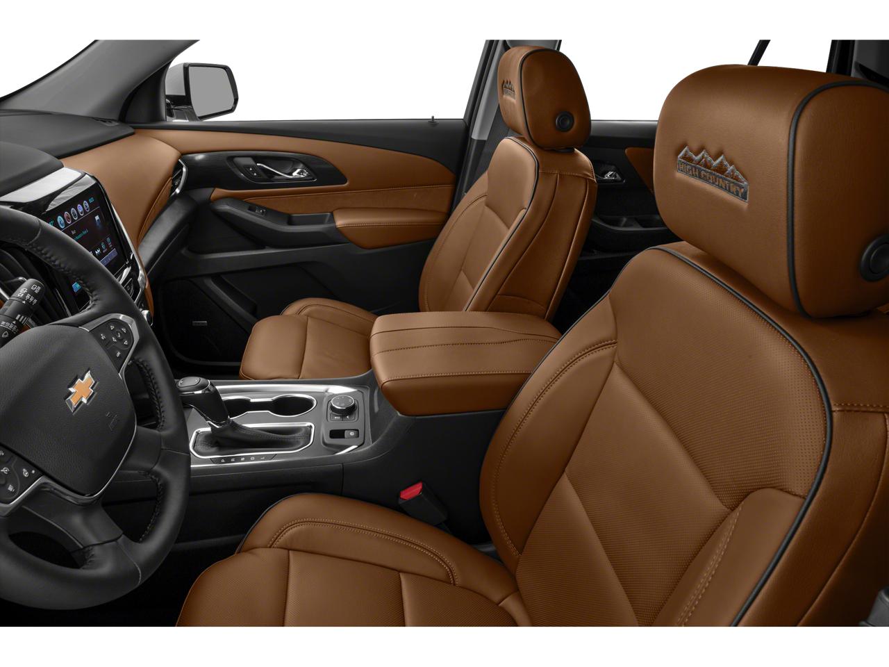 Floor Liner Package (LPO) (1st & 2nd Row All-Weather Floor Liner (LPO), 3rd Row All-Weather Floor Liner (LPO), and Integrated Cargo Liner (LPO)), Front License Plate Bracket Mounting Package, Preferred Equipment Group 2LZ, Traverse High Country, AWD, 10 Speakers, 20 Polished Aluminum Wheels, 3.49 Axle Ratio, 3rd row seats: split-bench, 4-Wheel Disc Brakes, 7-Passenger Seating (2-2-3 Seating Configuration), ABS brakes, Air Conditioning, Alloy wheels, AM/FM radio: SiriusXM with 360L, Apple CarPlay/Android Auto, Auto High-beam Headlights, Auto-dimming door mirrors, Auto-dimming Rear-View mirror, Automatic temperature control, Bose Premium 10-Speaker Audio System Feature, Brake assist, Bumpers: body-color, Compass, Delay-off headlights, Driver door bin, Driver vanity mirror, Dual front impact airbags, Dual front side impact airbags, Electronic Stability Control, Emergency communication system: OnStar and Chevrolet connected services capable, Four wheel independent suspension, Front anti-roll bar, Front Bucket Seats, Front Center Armrest, Front dual zone A/C, Front fog lights, Front reading lights, Fully automatic headlights, Garage door transmitter, Heated door mirrors, Heated front seats, Heated rear seats, Heated steering wheel, Illuminated entry, Leather steering wheel, Low tire pressure warning, Memory seat, Navigation System, Occupant sensing airbag, Outside temperature display, Overhead airbag, Overhead console, Panic alarm, Passenger door bin, Passenger vanity mirror, Perforated Leather-Appointed Seat Trim, Power door mirrors, Power driver seat, Power Liftgate, Power moonroof: Dual SkyScape, Power passenger seat, Power steering, Power windows, Premium audio system: Chevrolet MyLink, Radio data system, Radio: Chevrolet Infotainment 3 Premium System, Rear air conditioning, Rear anti-roll bar, Rear reading lights, Rear window defroster, Rear window wiper, Remote keyless entry, Roof rack: rails only, Security system, SiriusXM w/360L, Speed control, Speed-sensing steering, Spoiler, Steering wheel memory, Steering wheel mounted audio controls, Tachometer, Telescoping steering wheel, Tilt steering wheel, Traction control, Trip computer, Turn signal indicator mirrors, Variably intermittent wipers, Ventilated front seats, and Voltmeter.