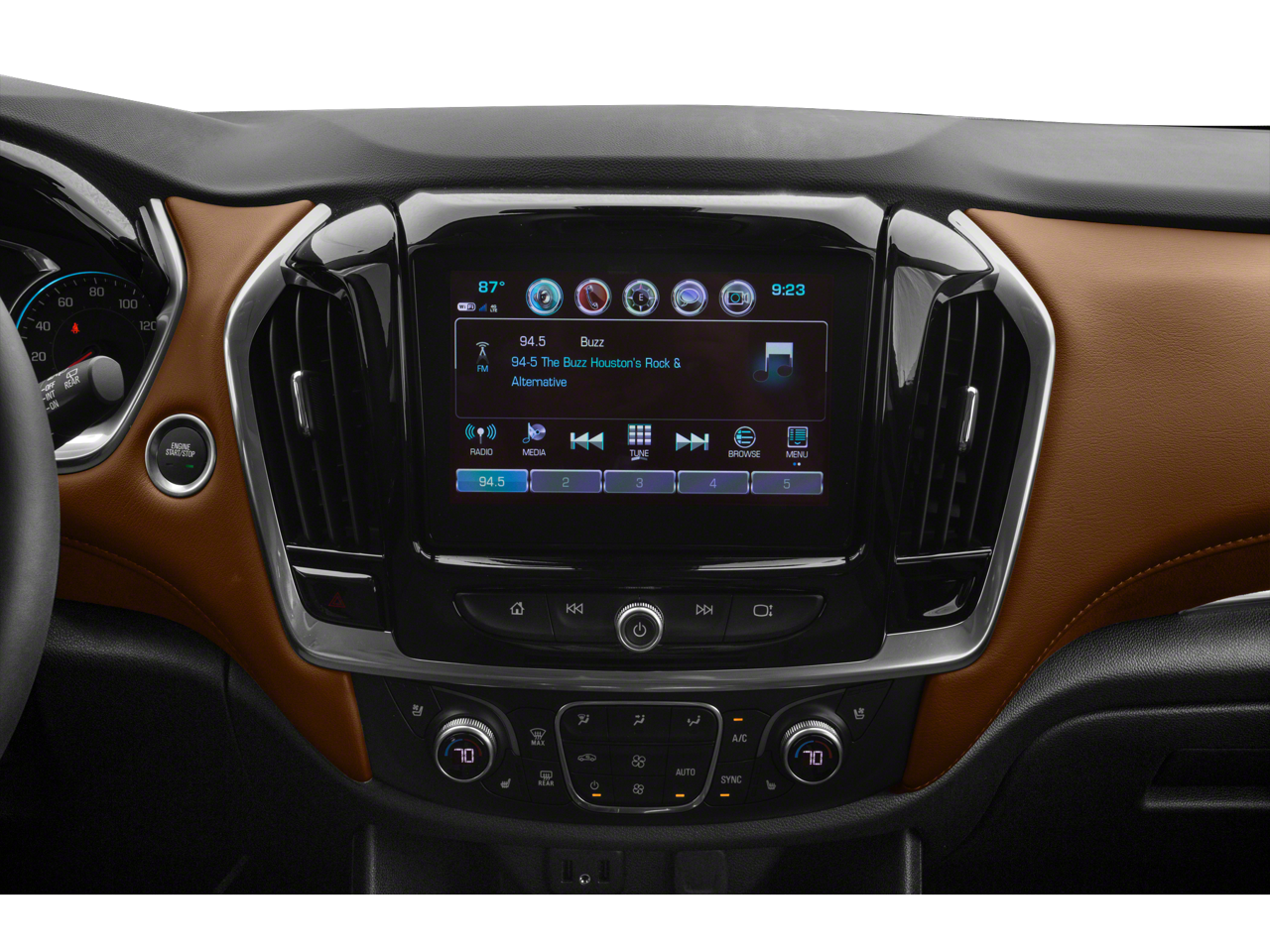 - Audio system, Chevrolet Infotainment 3 Premium system with connected Navigation, 8" diagonal HD color touchscreen, AM/FM stereo, Bluetooth® audio streaming for 2 active devices, Apple CarPlay and Android Auto capable, enhanced voice recognition, additional memory for in-vehicle apps, cloud connected personalization for select infotainment and vehicle settings. Subscription required for enhanced and connected services after trial period