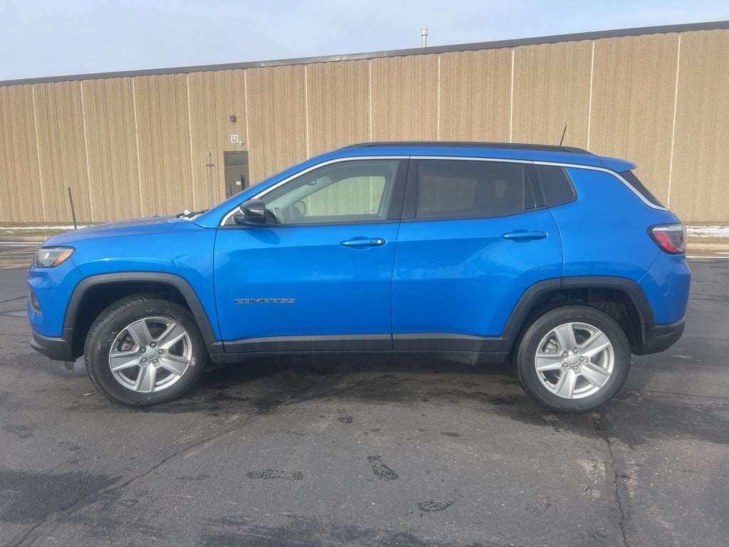 - The 2022 Jeep Compass Latitude in Laser Blue Pearlcoat with a Black interior is a stylish and versatile compact SUV available now at Umansky Toyota in Milwaukee, Wisconsin, offering a great blend of comfort, technology, and Jeep-inspired capability. Its vibrant blue exterior stands out on the road, while the sleek black interior provides a modern, comfortable cabin with plenty of convenience features. Designed for confident handling in city and highway driving, the Compass Latitude is perfect for navigating Milwaukee streets or exploring Wisconsin on the weekends. If you’re searching for a well-equipped and affordable used SUV near Milwaukee, WI, this 2022 Jeep Compass Latitude at Umansky Toyota is an excellent choice!