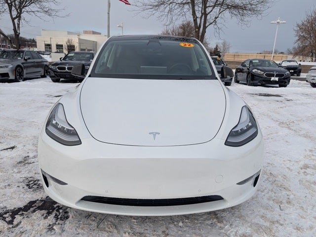 - The 2022 Tesla Model Y Long Range with a striking white exterior and refined black interior delivers exceptional electric performance and everyday versatility, now available at BMW of Milwaukee North in Milwaukee, Wisconsin. This all-electric SUV offers an impressive long-range driving capability, rapid acceleration, and smooth handling, making it perfect for both city commuting and long Midwest road trips. Inside, the minimalist cabin features advanced technology, a large touchscreen display, premium materials, and generous cargo space for maximum comfort and convenience. Known for its top safety ratings, innovative features, and low ownership costs, this 2022 Tesla Model Y Long Range is an outstanding choice for drivers seeking a high-performance electric SUV near Milwaukee.
