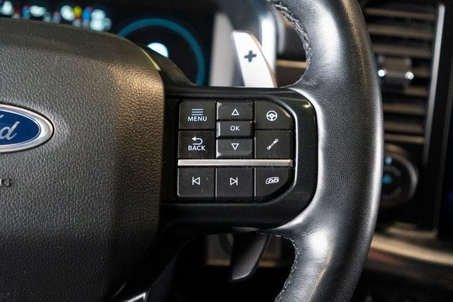 Equipment Group 801A Standard, GVWR: 7,300 lbs Payload Package, Moonroof & Tailgate (Power Tailgate and Twin Panel Moonroof), 4WD, Auto High-beam Headlights, Auto Start-Stop Removal (DISC), Brake assist, Exterior Parking Camera Rear, Heated front seats, Heated rear seats, Heated steering wheel, Radio: B&O Unleashed Sound System by Bang & Olufsen, SYNC 4 w/Enhanced Voice Recognition, Ventilated front seats, 17 Cast Aluminum Wheels, 18 Speakers, 4-Wheel Disc Brakes, ABS brakes, Adaptive suspension, Adjustable pedals, Air Conditioning, Alloy wheels, AM/FM radio: SiriusXM with 360L, Auto tilt-away steering wheel, Auto-dimming door mirrors, Auto-dimming Rear-View mirror, Automatic temperature control, Bumpers: body-color, Compass, Delay-off headlights, Driver door bin, Driver vanity mirror, Dual front impact airbags, Dual front side impact airbags, Electronic Locking w/4.10 Axle Ratio, Electronic Stability Control, Emergency communication system, Front anti-roll bar, Front Bucket Seats, Front Center Armrest, Front dual zone A/C, Front fog lights, Front reading lights, Front wheel independent suspension, Fully automatic headlights, Garage door transmitter, Heated door mirrors, Illuminated entry, Inclination/Intrusion Sensor Removal, Lane Departure Warning System, Leather Trim Seats w/Heated 2nd Row, Low tire pressure warning, Memory seat, Navigation system: Connected Navigation, Occupant sensing airbag, Outside temperature display, Overhead airbag, Overhead console, Panic alarm, Passenger door bin, Passenger vanity mirr