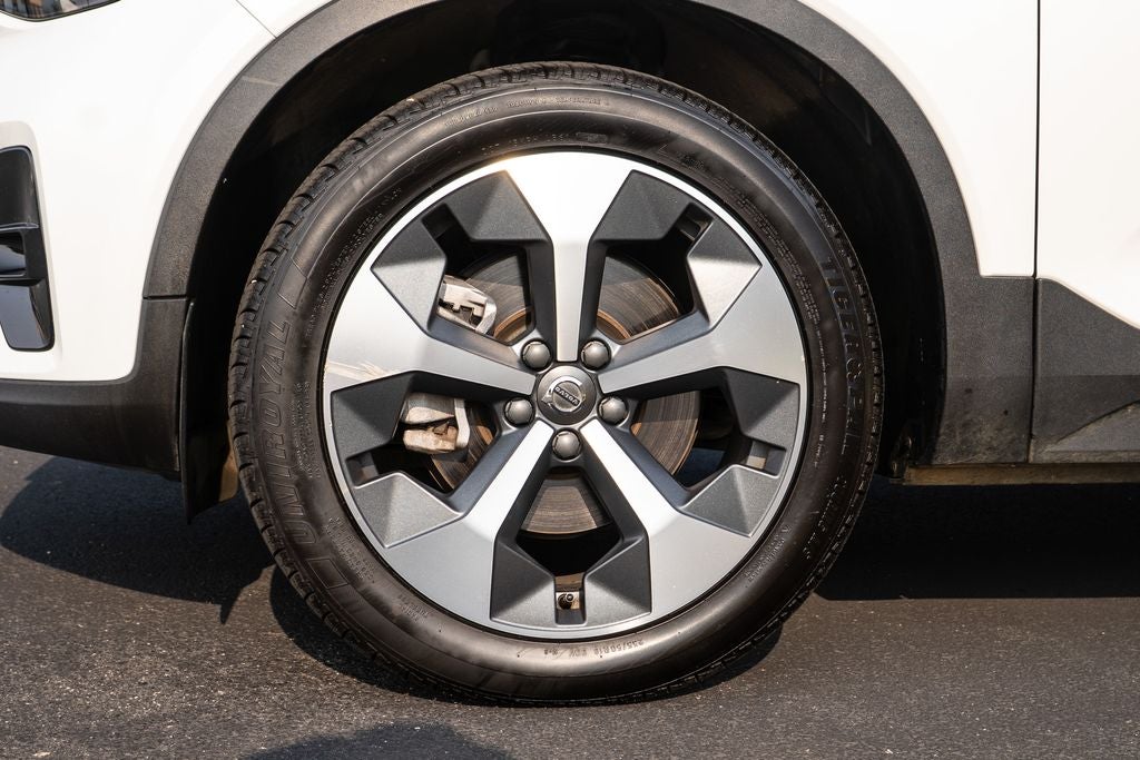 Internet access capable: Digital Services Package w/ 4 Year Subscription, Protection Package (Cargo Tray and Rubber Floor Mats), XC40 B5 Plus Dark Theme, 4D Sport Utility, 2.0L I4 Turbocharged DOHC 16V LEV3-ULEV70, AWD, Crystal White Metallic, Blond w/Leather Seating Surfaces w/Blonde Interior, Trunk Spoiler, Wheels: 19 5-Y Spoke Matte Graphite Alloy, 4-Wheel Disc Brakes, 8 Speakers, ABS brakes, Air Conditioning, Alloy wheels, AM/FM Radio, AM/FM radio: SiriusXM, Apple CarPlay, Auto High-beam Headlights, Auto-dimming door mirrors, Auto-dimming Rear-View mirror, Automatic temperature control, Brake assist, Bumpers: body-color, Connect Suede Textile/Microtech Seating Surfaces, Delay-off headlights, Driver door bin, Driver vanity mirror, Dual front impact airbags, Dual front side impact airbags, Electronic Stability Control, Emergency communication system: Volvo Cars App w/4 Year Subscription, Exterior Parking Camera Rear, Four wheel independent suspension, Front anti-roll bar, Front Bucket Seats, Front Center Armrest, Front dual zone A/C, Front fog lights, Front reading lights, Fully automatic headlights, Garage door transmitter: HomeLink, Heated door mirrors, Heated front seats, Illuminated entry, Knee airbag, Low tire pressure warning, Memory seat, Navigation System, Occupant sensing airbag, Outside temperature display, Overhead airbag, Overhead console, Panic alarm, Passenger door bin, Passenger vanity mirror, Power door mirrors, Power driver seat, Power moonroof, Power passenger seat, Power steering, Power windows, Radio data system, Rain sensing wipers, Rear anti-roll bar, Rear fog lights, Rear reading lights, Rear seat center armrest, Rear window defroster, Rear window wiper, Remote keyless entry, Security system, Speed control, Speed-sensing steering, Split folding rear seat, Spoiler, Steering wheel mounted audio controls, Tachometer, Telescoping steering wheel, Tilt steering wheel, Traction control, Trip computer, Turn signal indicator mirrors, and Variably intermittent wipers.