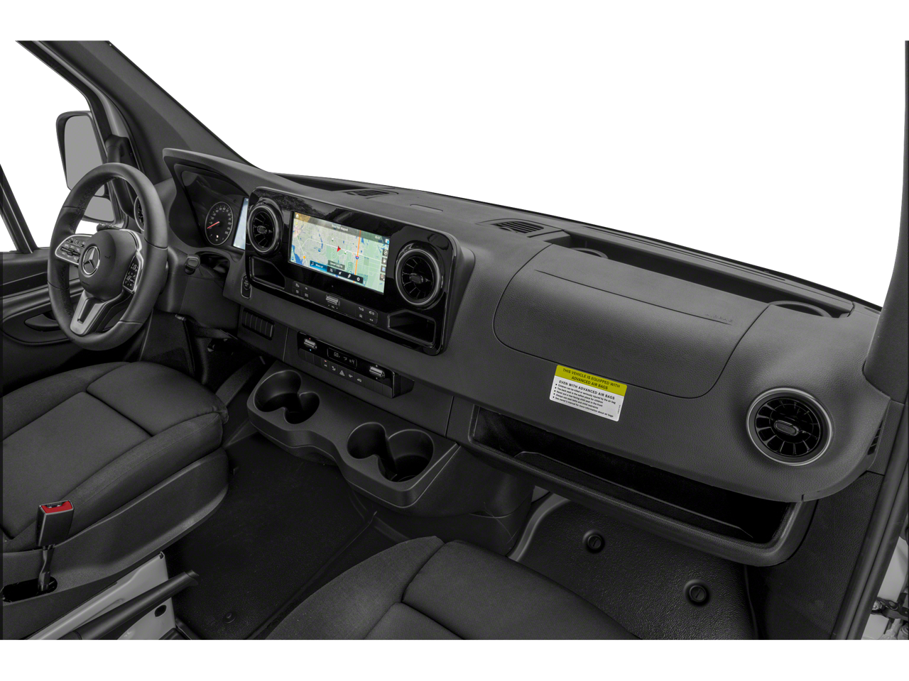 Acoustic Package, Comfort Package (Co-Driver Comfort Head Restraint, Co-Driver's Seat Lumbar Support, Comfort Overhead Control Panel, Driver Comfort Head Restraint, and Driver's Seat Lumbar Support), Driver Convenience Package (2 Additional Master Keys, ATTENTION ASSIST®, Driver Seat Base 12V Power Outlet, Electrically Folding Exterior Mirrors, Hinged Lid for Left & Right Storage Compartments, and Hinged Lid for Storage Compartment), MBUX Package (Instrument Panel Front-to-Rear Outlet, Pre-Installation for Navigation, and Radio: MBUX Multimedia System w/10.25 Touchscreen), Smartphone Integration Package, 16 x 6.5J Steel Wheels, 3.923 Axle Ratio, 4-Wheel Disc Brakes, 5 Speakers, ABS brakes, Air Conditioning, AM/FM radio, Armrest for Driver's Seat, Armrest for Front Passenger's Seat, Bodyside moldings, Brake assist, Cargo Partition, Co-Driver Thorax-Pelvis Sidebag, Driver door bin, Driver's Seat Mounted Armrest, Driver's Seat Occupancy Sensor, Dual front impact airbags, Dual front side impact airbags, Electric Parking Brake, Electronic Stability Control, Emergency communication system, Exterior Parking Camera Rear, Front anti-roll bar, Front Bucket Seats, Front Passenger Airbag, Front wheel independent suspension, Fully automatic headlights, Heated door mirrors, Heated Driver's Seat, Heated front seats, High Roof, Illuminated entry, LED Light Strip in Load Compartment, Low tire pressure warning, Maturin Fabric Upholstery, No Factory Installed Flooring, Outside temperature display, Overhead airbag, Overhead console, Passenger door bin, Passenger seat mounted armrest, Power door mirrors, Power steering, Power windows, Radio: Standard, Rain sensing wipers, Rear anti-roll bar, Remote keyless entry, Speed control, Standard Driver Seat, Standard Front Passenger Seat, Steering wheel mounted audio controls, Tachometer, Tilt steering wheel, Traction control, and Variably intermittent wipers.