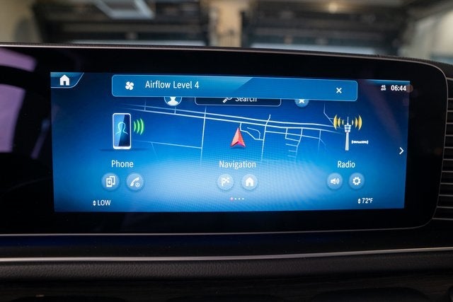13 Speakers, 3rd row seats: split-bench, 4-Wheel Disc Brakes, 7-Seat Configuration, ABS brakes, Adaptive suspension, Air Conditioning, Alloy wheels, AM/FM radio: SiriusXM, Apple CarPlay®/Android Auto®, Auto High-beam Headlights, Auto tilt-away steering wheel, Auto-dimming door mirrors, Auto-dimming Rear-View mirror, Auto-leveling suspension, Automatic temperature control, Brake assist, Bumpers: body-color, Child-Seat-Sensing Airbag, Compass, Delay-off headlights, Driver door bin, Driver vanity mirror, Dual front impact airbags, Dual front side impact airbags, Electronic Stability Control, Emergency communication system: eCall Emergency System, Exterior Parking Camera Rear, Four wheel independent suspension, Front anti-roll bar, Front Bucket Seats, Front Center Armrest w/Storage, Front dual zone A/C, Front reading lights, Fully automatic headlights, Garage door transmitter: HomeLink, Head restraints memory, Heated door mirrors, Heated front seats, Illuminated entry, Knee airbag, Leather steering wheel, Low tire pressure warning, MB-Tex Upholstery, Memory seat, Navigation system: MB Navigation, Occupant sensing airbag, Outside temperature display, Overhead airbag, Overhead console, Panic alarm, Passenger door bin, Passenger vanity mirror, Power adjustable front head restraints, Power door mirrors, Power driver seat, Power Liftgate, Power moonroof: Panorama, Power passenger seat, Power steering, Power windows, Premium audio system: MBUX, Radio: Burmester® Surround Sound System, Rain sensing wipers, Rear air conditioning, Rear anti-roll bar, Rear dual zone A/C, Rear fog lights, Rear reading lights, Rear seat center armrest, Rear window defroster, Rear window wiper, Reclining 3rd row seat, Remote keyless entry, Security system, Speed control, Speed-sensing steering, Speed-Sensitive Wipers, Split folding rear seat, Spoiler, Steering wheel memory, Steering wheel mounted audio controls, Tachometer, Telescoping steering wheel, Tilt steering wheel, Traction control, Trip computer, Turn signal indicator mirrors, Variably intermittent wipers, Ventilated front seats, Weather band radio, and Wheels: 21 Triple 5-Spoke.