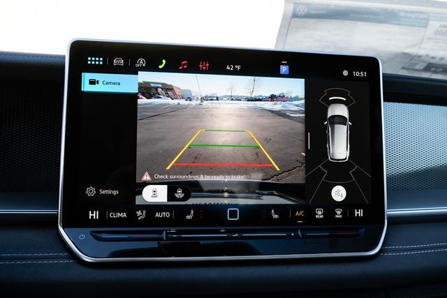 Volkswagen Certified Pre-Owned Certified, AWD, 4-Wheel Disc Brakes, 4-Wheel Independent Suspension, 7 Speakers, ABS brakes, Air Conditioning, Alloy wheels, AM/FM radio: SiriusXM with 360L, Auto High-beam Headlights, Auto-dimming Rear-View mirror, Automatic temperature control, Brake assist, Bumpers: body-color, Compass, Delay-off headlights, Driver door bin, Driver vanity mirror, Dual front impact airbags, Dual front side impact airbags, Electronic Stability Control, Emergency communication system, Exterior Parking Camera Rear, Four wheel independent suspension, Front anti-roll bar, Front Bucket Seats, Front Center Armrest, Front dual zone A/C, Front reading lights, Fully automatic headlights, Heated door mirrors, Heated Front Seats, Heated Front Seats, Illuminated entry, Knee airbag, Leather Shift Knob, Low tire pressure warning, Occupant sensing airbag, Outside temperature display, Overhead airbag, Overhead console, Panic alarm, Passenger door bin, Passenger vanity mirror, Perforated V-Tex Leatherette Seating Surfaces, Power door mirrors, Power driver seat, Power Liftgate, Power steering, Power windows, Radio data system, Radio: MIB4 Composition Media Touchscreen with AM/FM, Rain sensing wipers, Rear anti-roll bar, Rear reading lights, Rear seat center armrest, Rear side impact airbag, Rear window defroster, Rear window wiper, Remote Keyless Entry, Security system, Speed control, Speed-sensing steering, Split folding rear seat, Spoiler, Steering wheel mounted audio controls, Tachometer, Telescoping steering wheel, Tilt steering wheel, Traction control, Trip computer, Turn signal indicator mirrors, Variably intermittent wipers, and Wheels: 19 2-Tone Machined Alloy.